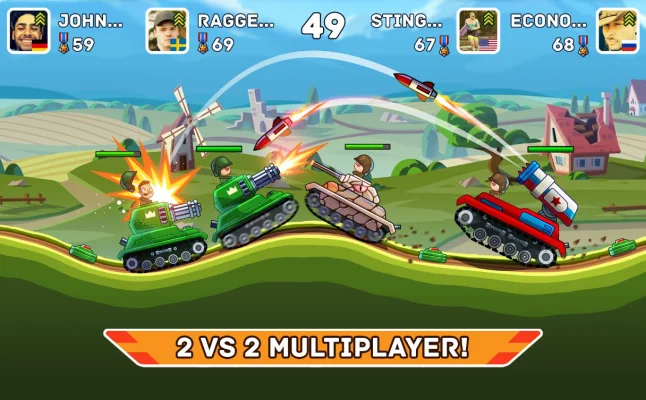 Hills of Steel Mod Apk is the most popular offline tank combat game on the hills. In Hills of Steel, you have to select a tank and upgrade the tank to its maximum level to get the best fighting performance from it. There are various kinds of tanks available in this game. You need to complete every mission and collect coins to unlock new tanks. To complete the mission, you have to start the journey on the hill using a tank and destroy every enemy vehicle to earn money and complete the mission. You can play Hills of Steel in 2vs2 multiplayer mode online. You can also play a special event every week to earn extra money in Hills of Steel.